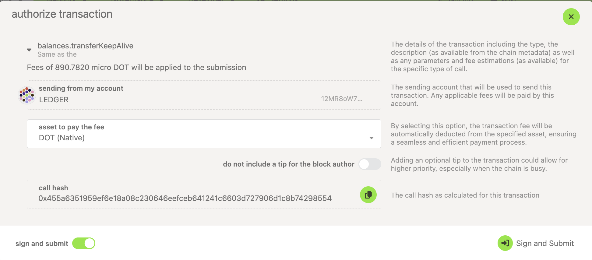 And that's it! After a few seconds, the transaction should be recorded and validated on-chain. You can check further details about it in any of the many block explorers in Polkadot.