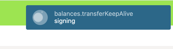 4. The modal will disappear, and on the top-right corner, a moving circle will appear, indicating there is a pending transaction, while the UI awaits confirmation from the Ledger device.