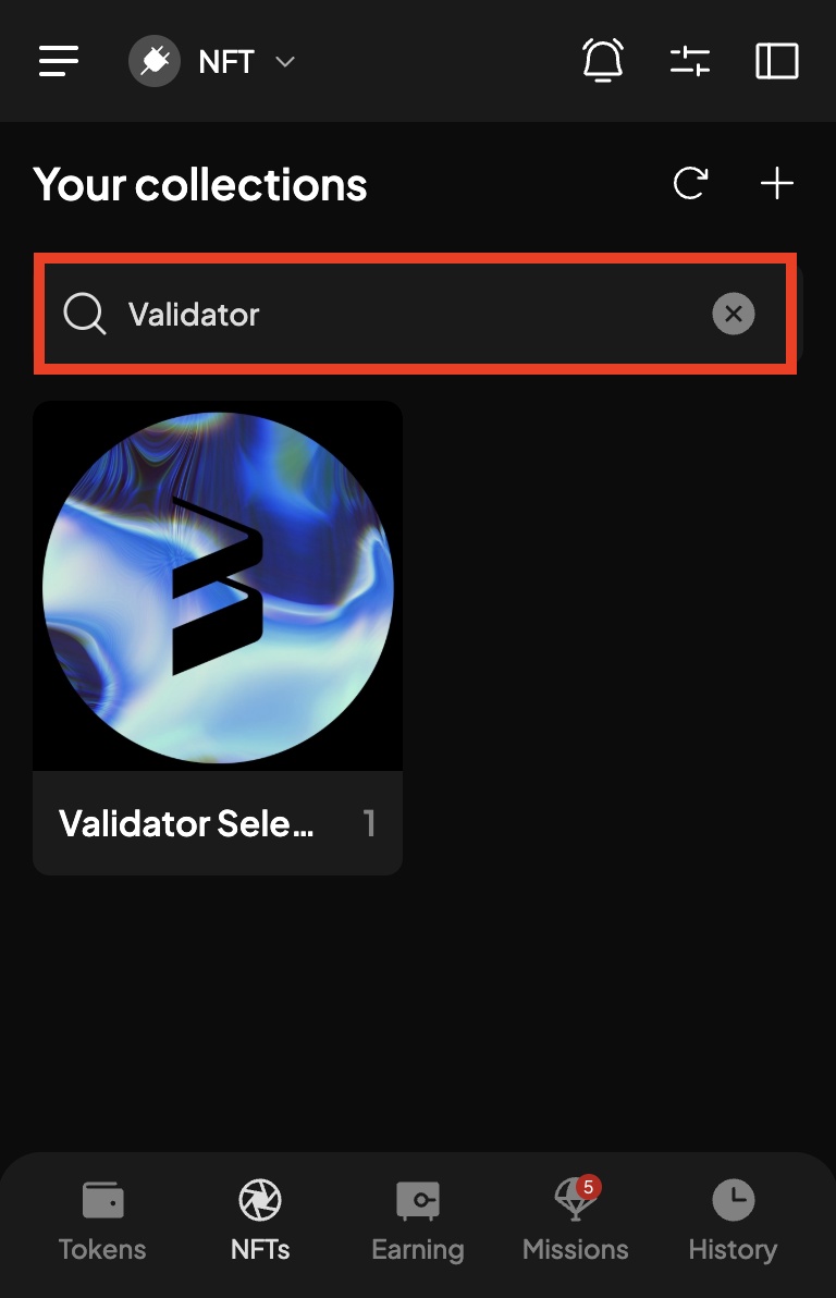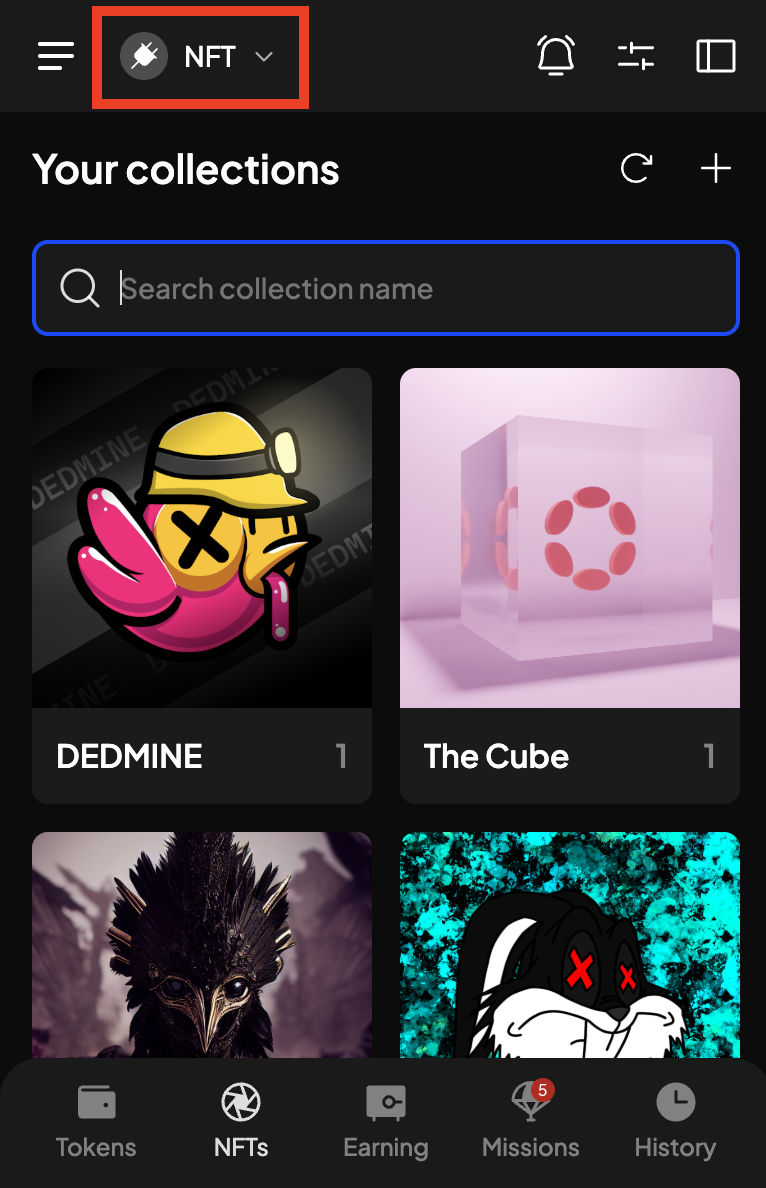 1. To view your NFT collections, click on the "NFTs" button at the bottom:
