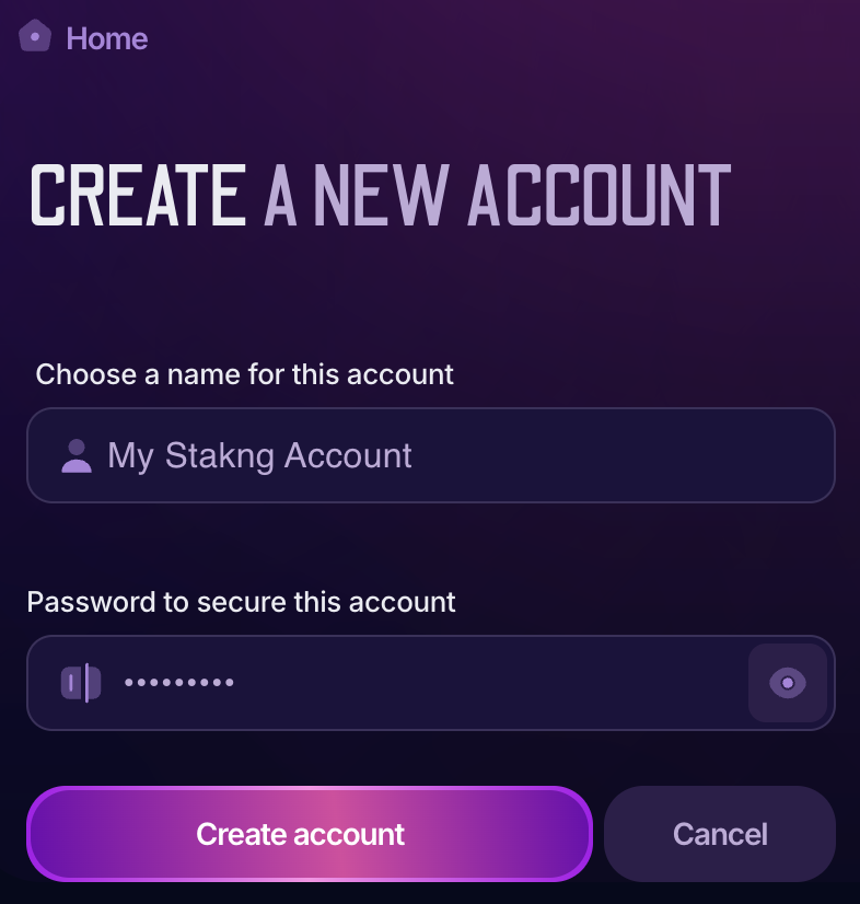 You can read about good practices for keeping your backup safe in "How to Store Your Mnemonic Phrase and Backup File Safely".4. Name your new account, enter your wallet password, and click "Create account":