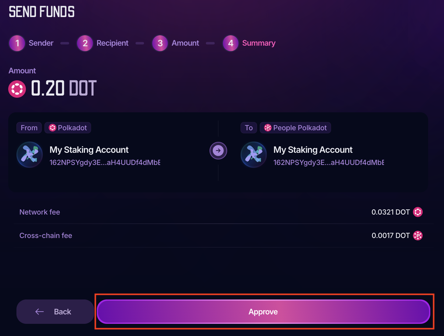 5. Review the transaction details, and click "Approve":