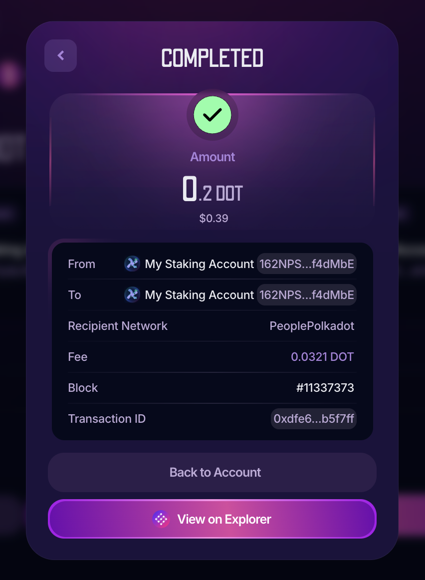 6. That's it! You will see your transaction being completed. Click "View on Explorer" for more detailed information: