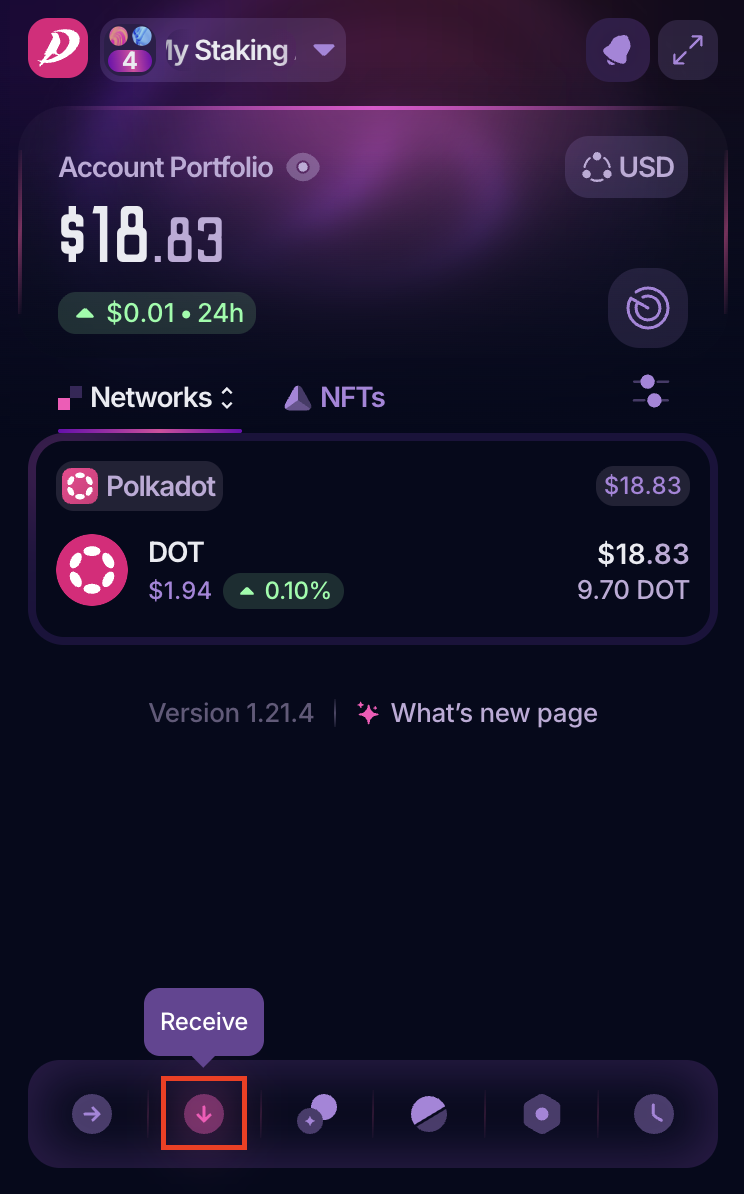 In this article, we'll show you how to receive DOT or another supported token into your PolkaGate account.