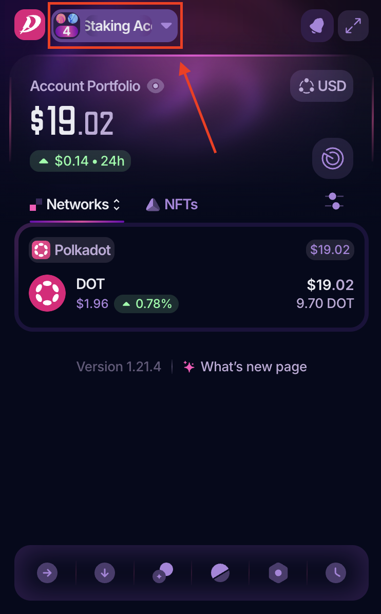 1. Open your PolkaGate extension and in the drop-down menu, select the account on which you want to receive the tokens: