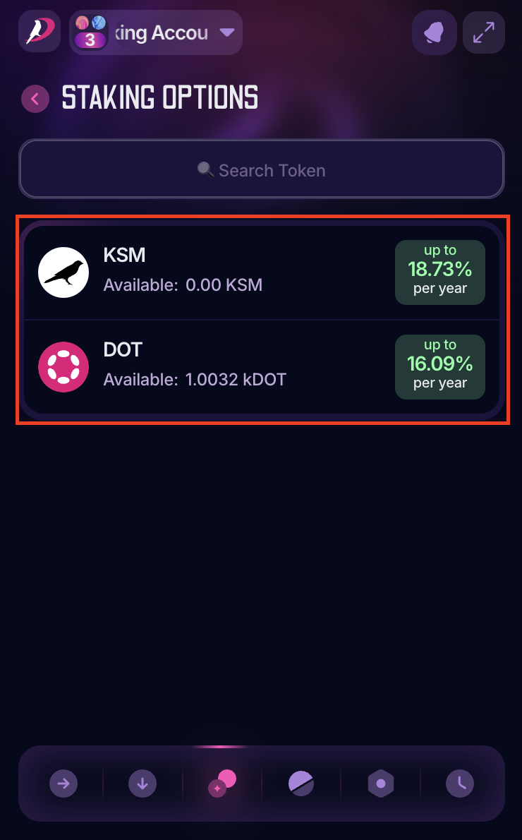 3. Select the token you want to stake. In this article, we use DOT: