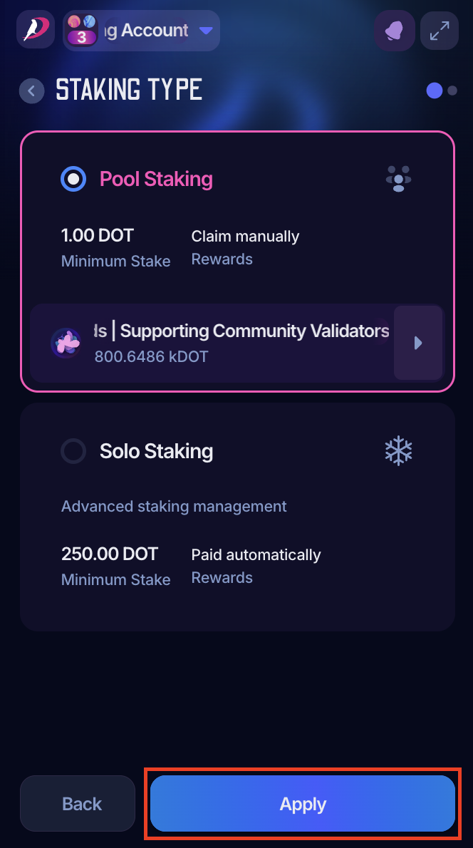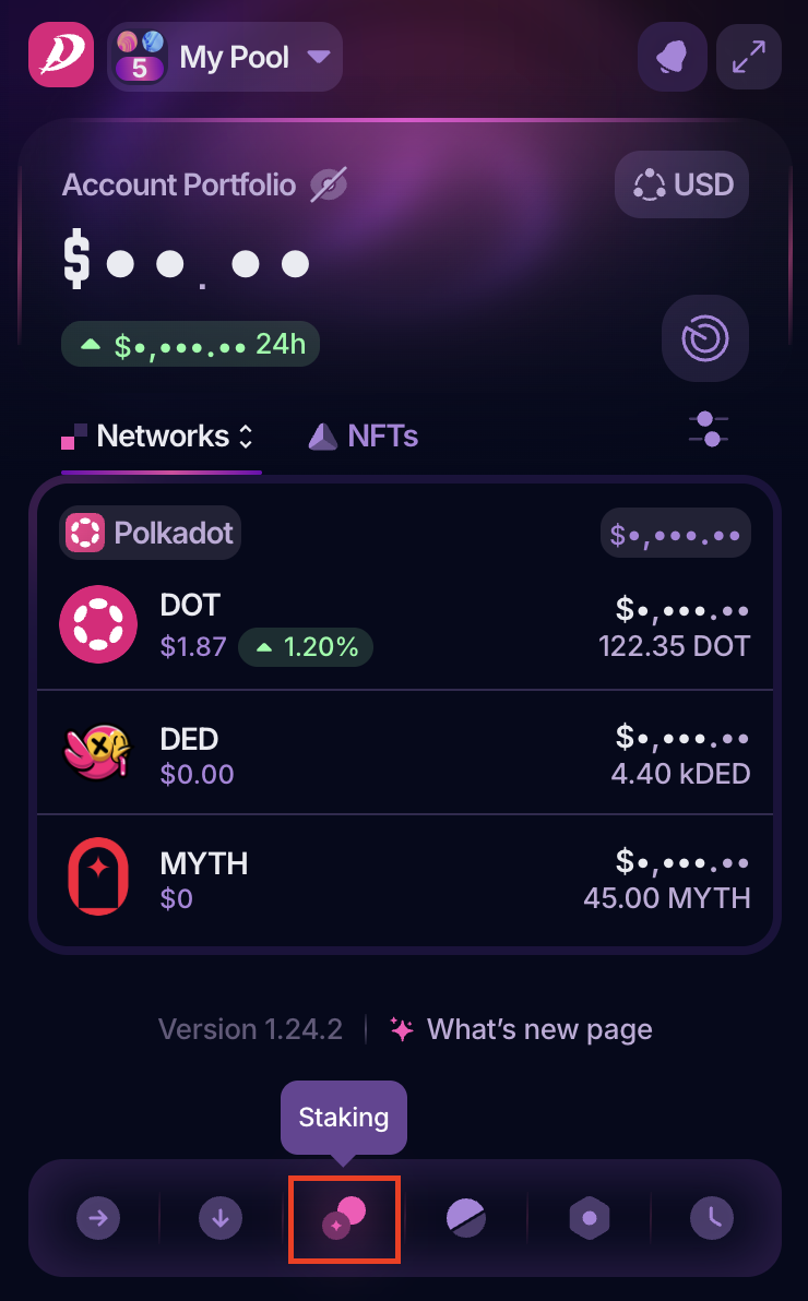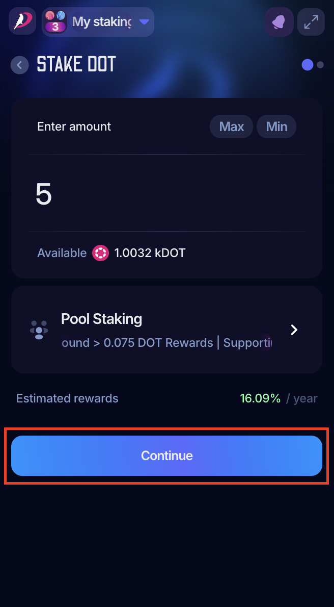 The steps below will guide you on joining a nomination pool, but if you want to stake solo, check the article "Polkagate: How to Stake Your DOT."