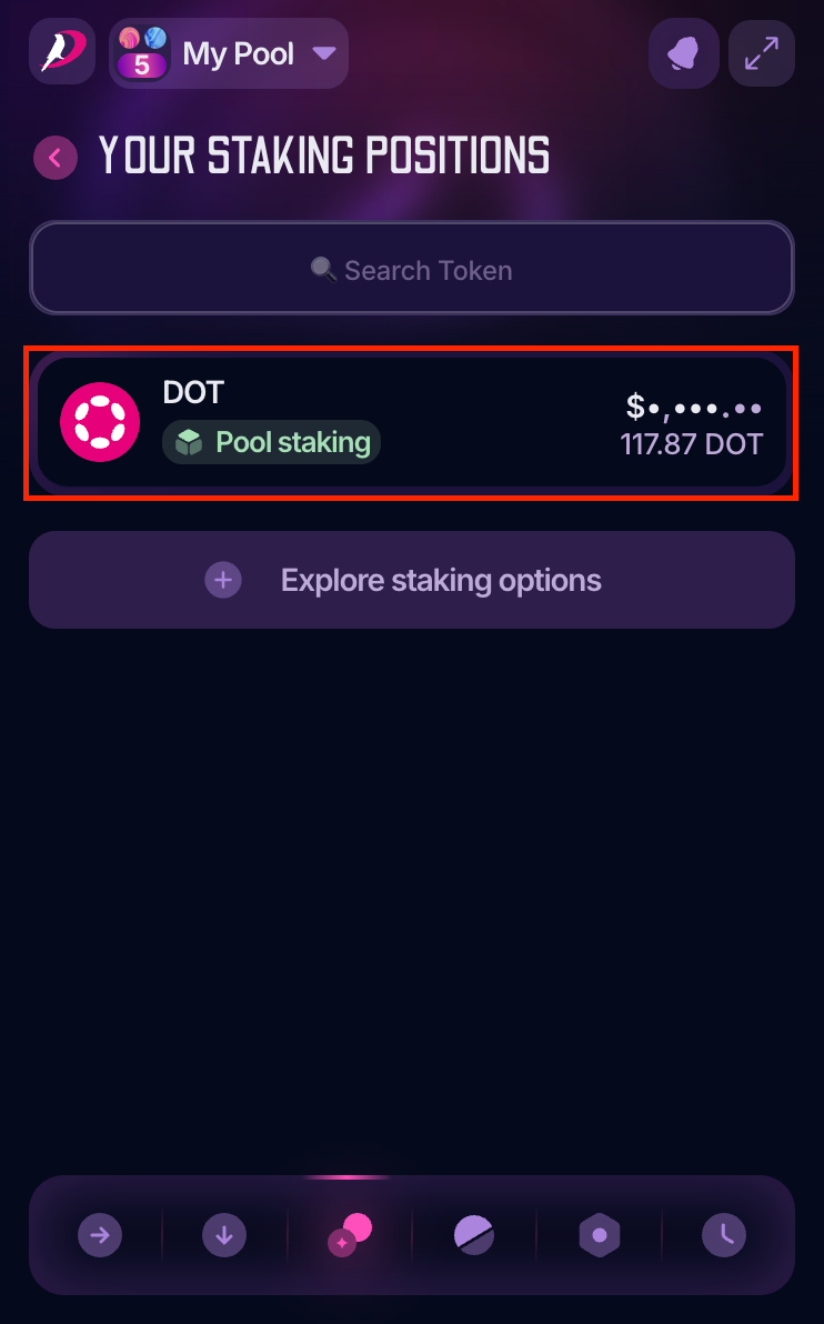 3. Now, you'll see your staking position for this account. Click on it to view additional options: